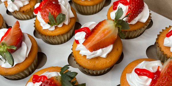 This is our BubblyBerry Cupcake.It’s a Champagne and Lushberry flavored cupcake topped w/champagne whipped Icing and fresh strawberries.